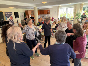 Im geschmückten Gemeinschaftsraum erwartete die Gäste eine einladende Kaffeetafel mit Kuchen, die in gemütlicher Atmosphäre zum Verweilen und Austausch einlud. Für die musikalische Umrahmung sorgte der Künstler Giovanni Passarotto, der unter dem Namen RioGio bekannt ist. Mit einem Repertoire aus beliebten Klassikern, Schlagern und Evergreens traf er genau den richtigen Ton – im wahrsten Sinne des Wortes. Es wurde mitgesungen, geschunkelt und gelacht – und sogar das Tanzbein geschwungen.