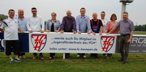 FC Hevesen 30.06.15Achum (mm-30.06.15). Zu einem gemütlichen Grillabend hatte der FC Hevesen die Sponsoren eingeladen, die den Verein über die Bandenwerbung unterstützen. „Die Bandenwerbung ist früher immer ein Ärgernis gewesen, ist heute aber eine Augenweide“, meinte FC-Vorsitzender Friedhelm Winkelhake, als er gemeinsam mit seinen Vorstandskollegen den Sponsoren die mit ihrem Firmenlogo neu gestalteten Werbetafeln am Rande des Sportplatzes präsentieren konnte.