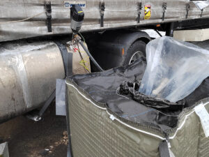Durch den Unfall verlor der LKW eine große Menge an Kraftstoff, der sich auf alle drei Fahrspuren verteilte.