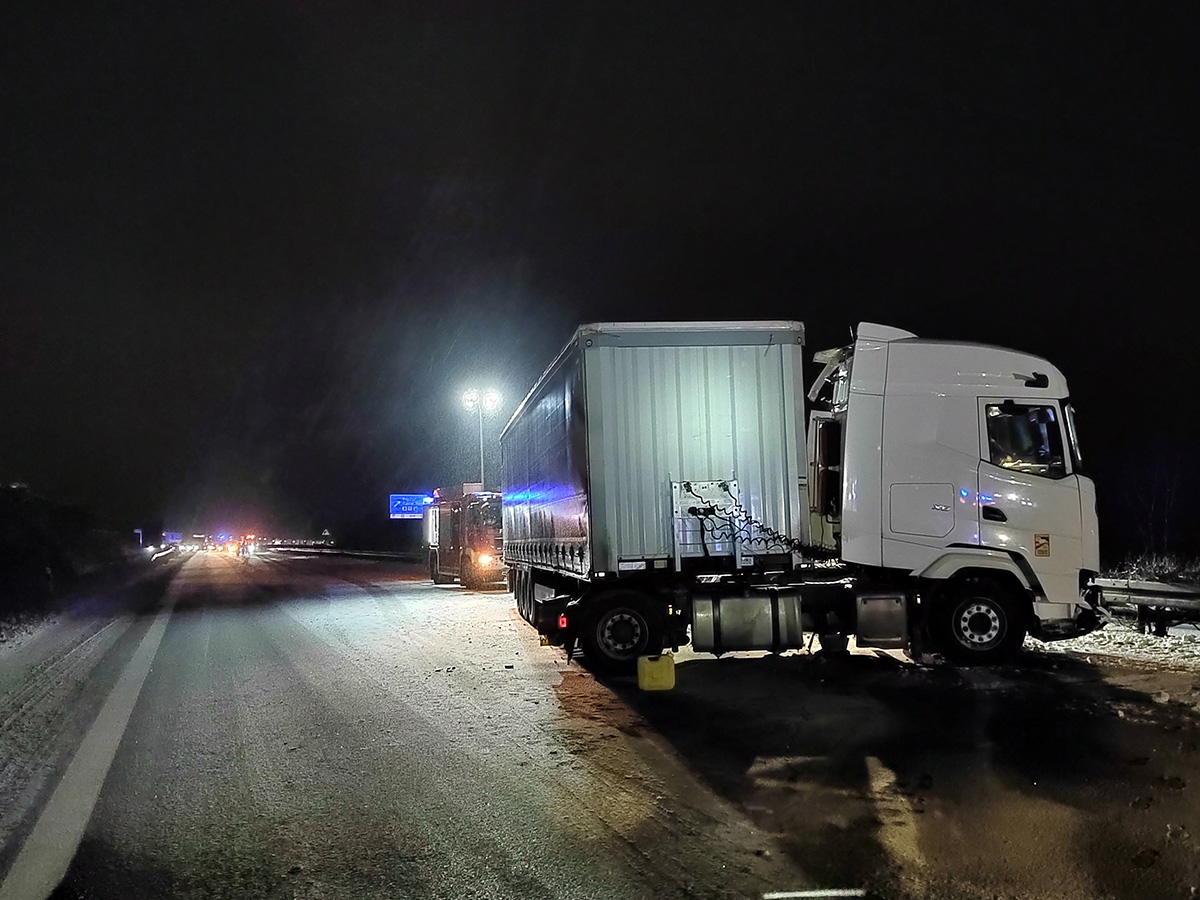 Der verunfallte LKW kam quer auf dem rechten und mittleren Fahrstreifen zum Stehen.