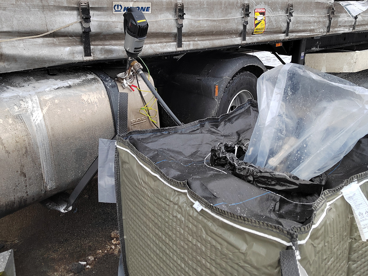 Mittels Fasspumpe und eines Faltcontainers gelang es, die verbliebenen ca. 300l Diesel aus dem beschädigten Tank zu pumpen.