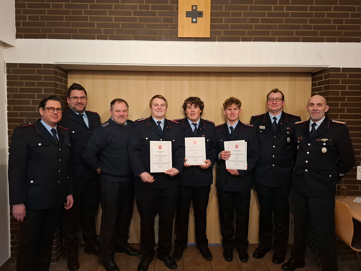 (ffr – 12.1.26) Bevor Ortsbrandmeister Michael Eichhorn seinen Jahresbericht hielt, musste Stadtjugend-feuerwehrwartin Melanie Rüthemann ihre Grußworte aus terminlichen Gründen vorziehen. Sie übergab anschließend Jannis Hoffmann aus der Jugendfeuerwehr an die aktive Abteilung.