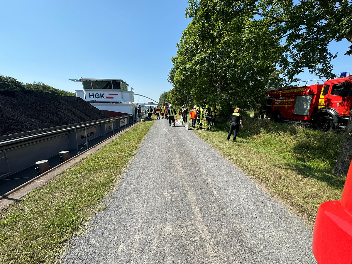 (ff – 15.8.24) Am Dienstagmittag kam es im Motorraum eines Binnenschiffes auf dem Mittellandkanal zu einem Brand.