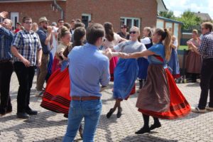 Nach dem Ehrentanz des Erntebauern Marcel Schramme mit Anne Pohl folgten noch weitere Erntetänze der Erwachsenen und der Kinder. Anschließend startete der Festumzug mit weiteren Tanzstationen an der Volksbank Kirchhorsten, beim Altenheim und an der Seggebrucher Straße. Im Festzelt nutzte man die Zeit bis zur Rückkehr zum Klönen bei Kaffee und Kuchen.