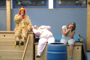 Bückeburg (mm-04.09.19). Die drei Freunde Jonny Mauser, Franz von Hahn und der dicke Waldemar, nach Helma Heine, begrüßten die neuen Kinder in der Kindertagesstätte Unterwallweg. Die Freunde leben zusammen auf einem Bauernhof und erleben jeden Tag spannende Abenteuer.