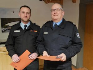 Im Rahmen der Versammlung nahm Kreisbrandmeister Grote mehrere Beförderungen vor. Frank Messerschmidt wurde zum Hauptbrandinspektor befördert, Jo Christian Herbst zum Brandmeister.