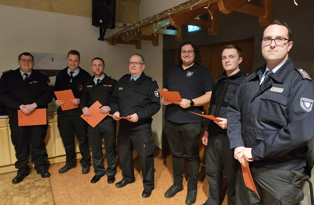 Im Rahmen der Versammlung nahm Kreisbrandmeister Grote mehrere Beförderungen vor. Frank Messerschmidt wurde zum Hauptbrandinspektor befördert, Jo Christian Herbst zum Brandmeister.