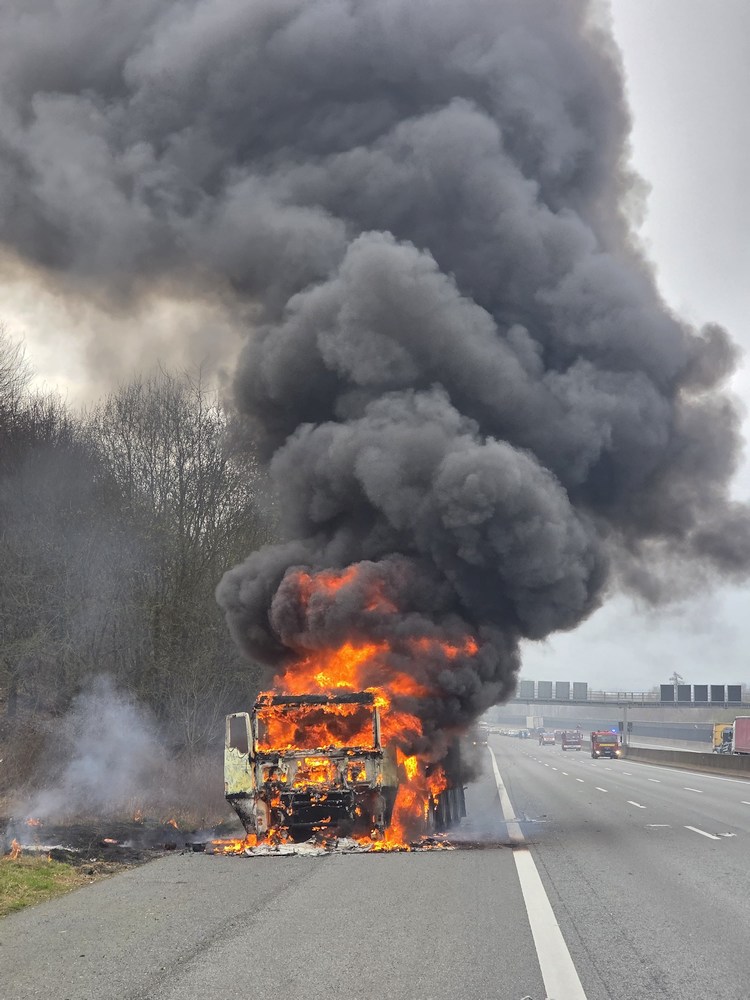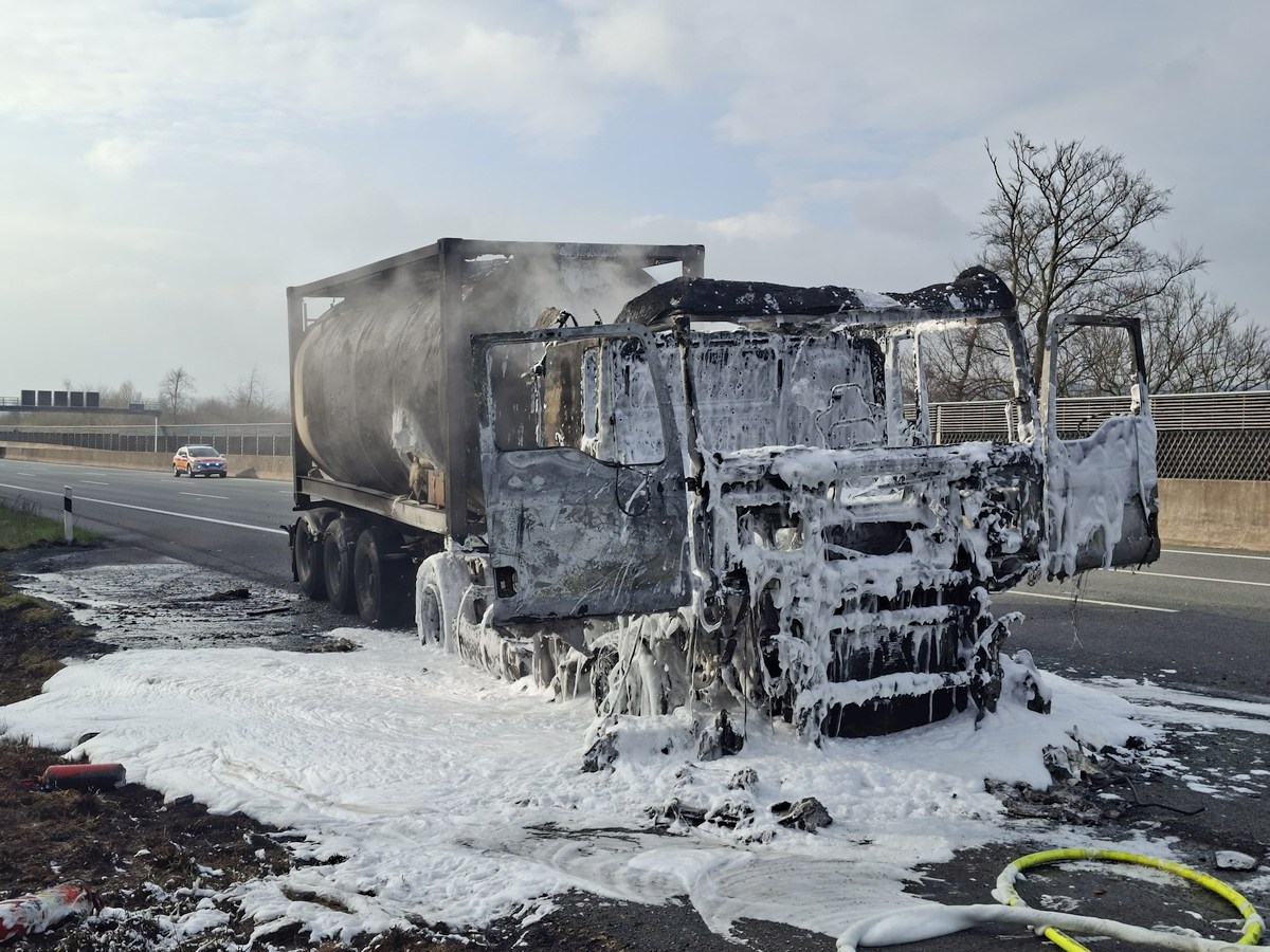 Gefahrgut-Lkw brennt auf der BAB 2: