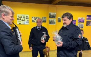 Bürgermeister Oliver Theiß blickte nochmal auf die Zeit zurück und berichtete über einige der unzähligen Einsätze. Die Feuerwehr hat sich in dieser langen Zeit sehr gewandelt und beide haben einen sehr großen Teil dazu beigetragen; sei es der Feuerwehrbedarfsplan oder der Wechsel der Schutzkleidung. Theis sprach seinen besonderen Dank aus und wünschte beiden für die Zukunft alles Gute.