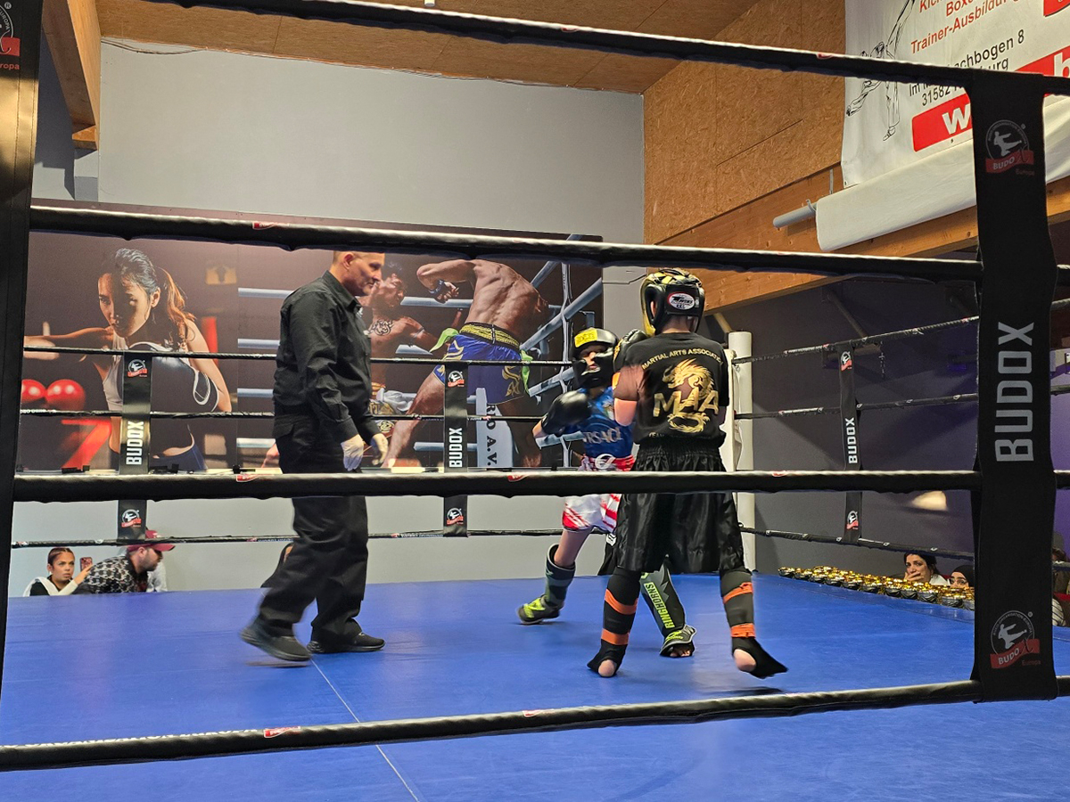 Die Vorgala mit den Kinderkämpfen startete um 15:30 Uhr nachdem obligatorischen ärztlichen Check. Das „Golden Dragons“-Kampfkunstcenter Stadthagen (KKC) war mit dem Trainerteam von Meister Bernd Höhle und Meister Mustafa Özata mit insgesamt 22 Kämpfer*innen am Start. Für 15 von ihnen ergaben sich an diesem Tag entsprechende Paarungen.