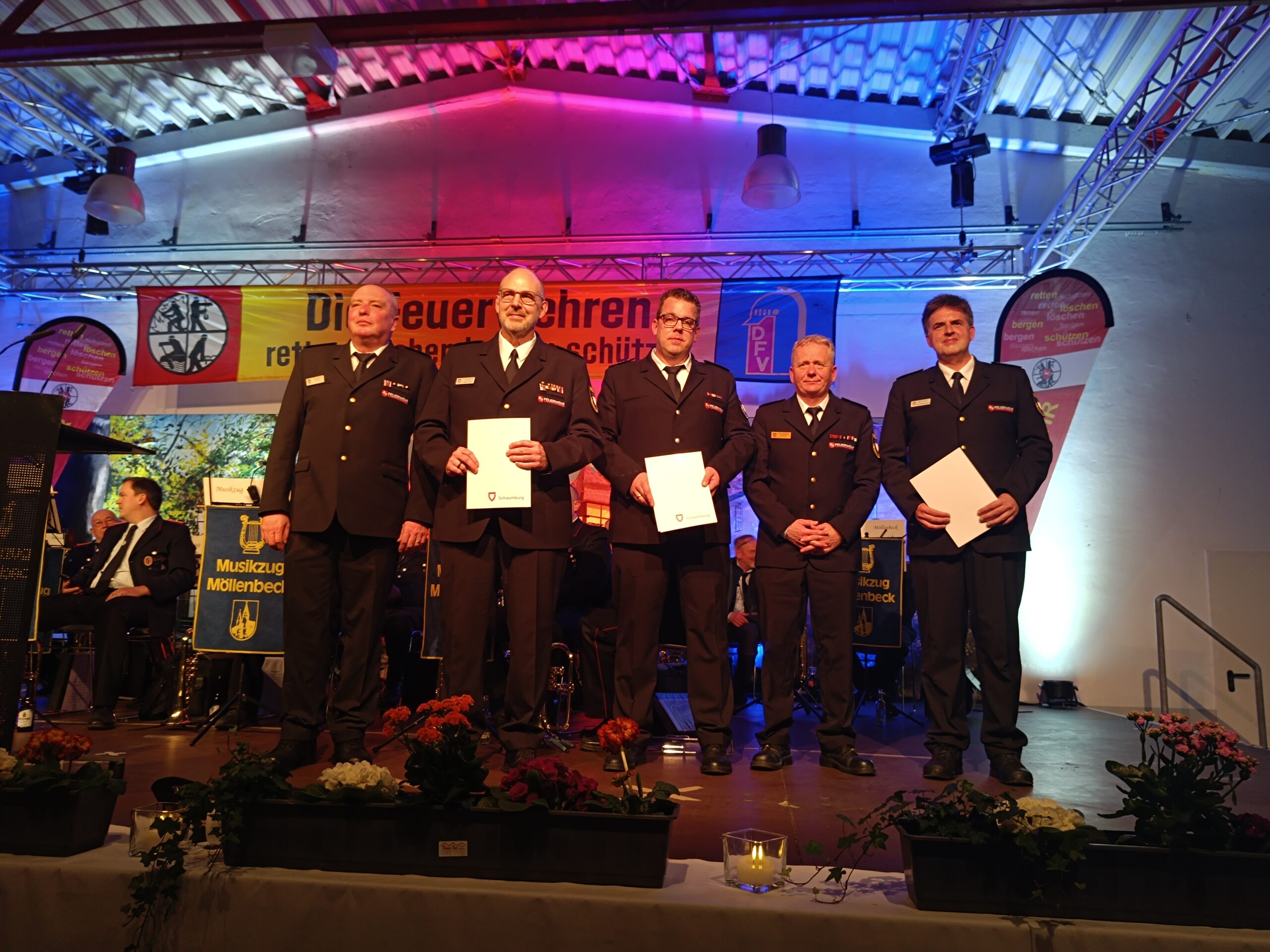 Landrat Jörg Farr ernannte Joachim Muth zum Kreisbrandmeister, Marc-Henning Kommerein zum Abschnittsleiter Nord und Benjamin Heine zum stellv. Abschnittsleiter. Nach der Ernennung beförderte Landrat Farr die drei neuen Funktionsträger.
