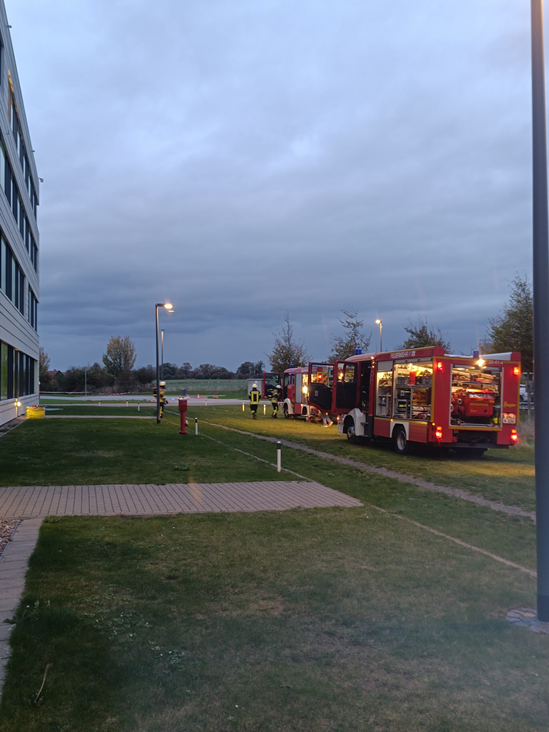 Die Feuerwehr richtete vor dem Gebäude eine Verletztensammelstelle ein. Die Wasserversorgung wurde über die Wandhydranten in den betroffenen Bereichen sichergestellt. Mit Hilfe eines Elektrolüfters wurde der betroffene Bereich belüftet. Kurze Zeit später gab Stadtbrandmeister Frank Belte „Übungsende“.