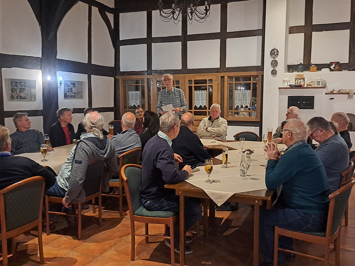 Da auch neue Mitglieder und einige der nicht mehr Aktiven dabei waren, ging der Gesprächsstoff nicht aus. Die Jedermänner waren mit ihrem nunmehr bereits vierten Besuch im Achumer Meierhof so gut zufrieden, dass sie am Ende gleich den Termin für das nächste Grünkohlessen mit der Wirtin vereinbart haben. Während die meisten mit Autos zurückfuhren, trat eine Gruppe von sieben Wanderern den Rückweg wieder zu Fuß an.