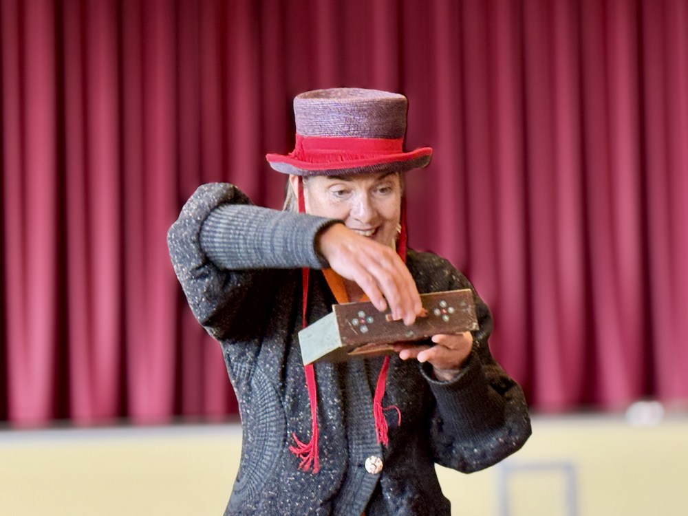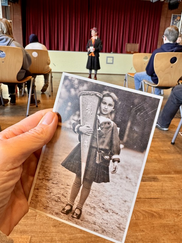 (igs – 29.1.26) Unser 7. Jahrgang durfte eine besondere Theatervorstellung besuchen. Die Freie Bühne Wendland war mit der Schauspielerin Kerstin Wittstamm zu Gast, die in dem Stück „Hermine Katz und das ungeheure Wissen der Dachböden“ die Geschichte der jüdischen Familie Mansfeld aus Lüchow erzählte. Was war da los, überall in Deutschland, vor bald einhundert Jahren? In der Darstellung vieler unterschiedlicher Charaktere ihres damaligen Heimatortes vermittelte Frau Wittstamm als Hermine Katz den Schüler*innen eindrücklich die Schwierigkeiten und Ungerechtigkeiten, denen die Familie Mansfeld während des Hitlerregimes ausgesetzt war.