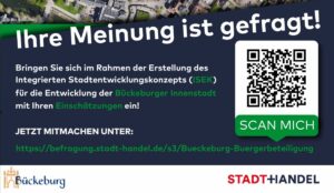 Ab sofort ist auch die Online Umfrage für das ISEK online. Unter folgendem Link kann man auf die Umfrage zugreifen: https://befragung.stadt-handel.de/s3/Bueckeburg-Buergerbeteiligung