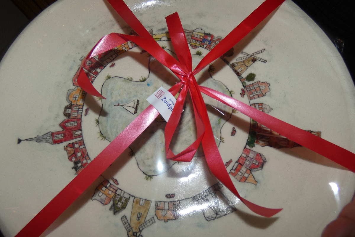 Als Gastgeschenk für den Stadtmajor des Bückeburger Bürgerbataillons sowie den Bürgermeister überreichte er zwei große Schalen, die von Hand mit charakteristischen Gebäuden der Gemeinde bemalt worden sind. Die Schalen stammen aus der Stiftung Orion aus dem Ort Zevenhuizen. Dies ist eine Pflegeeinrichtung für Jugendliche und Erwachsene mit geistigem Handicap und besitzt unter anderem eine Keramikwerkstatt.