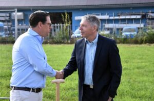Bückeburg (mm-24.08.23). Dieter Ahrens hat am Mittwochvormittag gemeinsam mit Landrat Jörg Farr, Bürgermeister Axel Wohlgemuth, Peter Karst, Hauptgeschäftsführer Handwerkskammer Hannover, Volker Wehmeyer und Thomas Mahrenholtz den symbolischen ersten Spatenstich für das Endlos-Energie-Zentrum Schaumburg (EEZS) in der Kreuzbreite vollzogen.