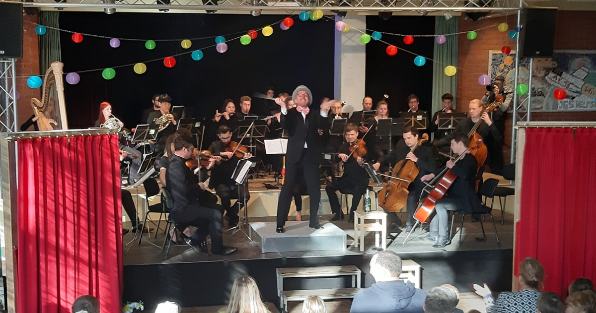 Helpsen (sh-18.02.19). Großeltern, Eltern und Kinder saßen gespannt und oft mit offenem Mund auf ihren Stühlen. Das Detmolder Kammerorchester war in der großen Aula der IGS Helpsen zu Gast mit seinem Programm für Familien: Jeder Ton ein Fest. Und so war es dann auch an diesem schönen sonnigen Nachmittag – große Begeisterung vom ersten Ton an.