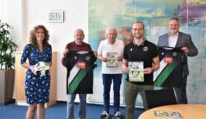 Foto: Freuen sich auf den Besuch der 96-Fußballschule in Evesen: Anja Bracht (v.li.), Peter Möse, Wilfried Krömker, Arne Kübek und Henning Sohl
