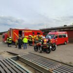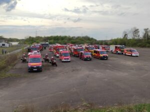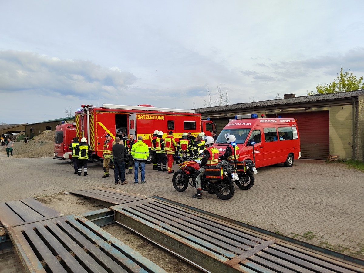 (adl – 22.4.26) Am vergangenen Freitagabend versammelten sich die Einheiten der Kreisfeuerwehrbereitschaft Nord sowie die Informations- und Kommunikationseinheit der Kreisfeuerwehr am Mittellandkanal in Sachsenhagen. Gemeinsam ging es von dort in Kolonne zum Übungsobjekt nach Lauenhagen, auf das Gelände der Mensching GmbH & Co. KG.