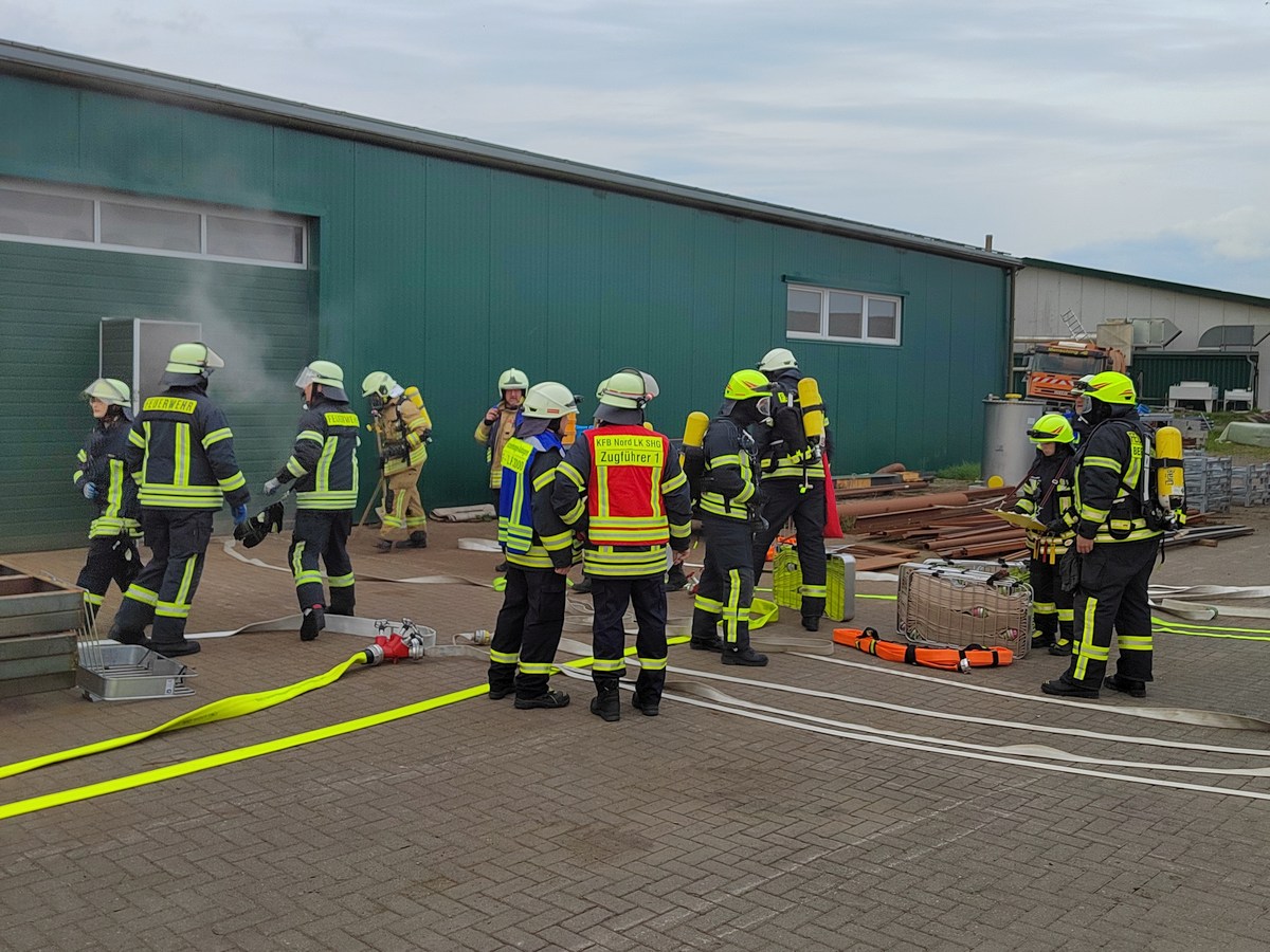 Kreisfeuerwehr Bereitschaft Nord trainiert Ernstfall: Feuer in einer Maschinenhalle