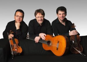 Foto: Carlos Johnson (Violine), Semjon Kalinowsky (Viola) und Andreas Schumann (Gitarre) spielen Werke von Arcangelo Corelli, Alessandro Rolla, Franz Lachner, Niccolò Paganini, Francesco Molino, Camillo Sivori und Mauro Giulani.