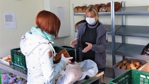 Mitarbeiterinnen und Mitarbeiter der Tafel stellen sich täglich neuen Herausforderungen. Es gelten strenge Richtlinien vom Gesundheitsamt, das die Räumlichkeiten der Tafel regelmäßig kontrolliert. Für Marja-Liisa Völlers ist ein gutes Netzwerk zwischen den Tafeln in der Umgebung ist sehr wichtig. „Erhält eine Tafel viel Ware der gleichen Art, tauscht sie einen Teil davon mit anderen Tafeln. So müssen die Kunden in einem Ort nicht nur von Brot und andere Kunden in einem anderen Ort von Wurst leben, sondern alle können Brot und Wurst bekommen.“ Durch die aktuellen Beschränkungen in der Corona-Krise sei es besonders wichtig, Abstand zu einander zu halten und nur in entsprechender Schutzkleidung die Lebensmittel zu verteilen.