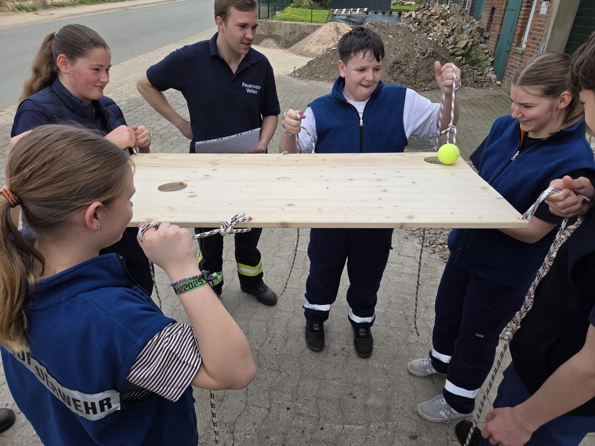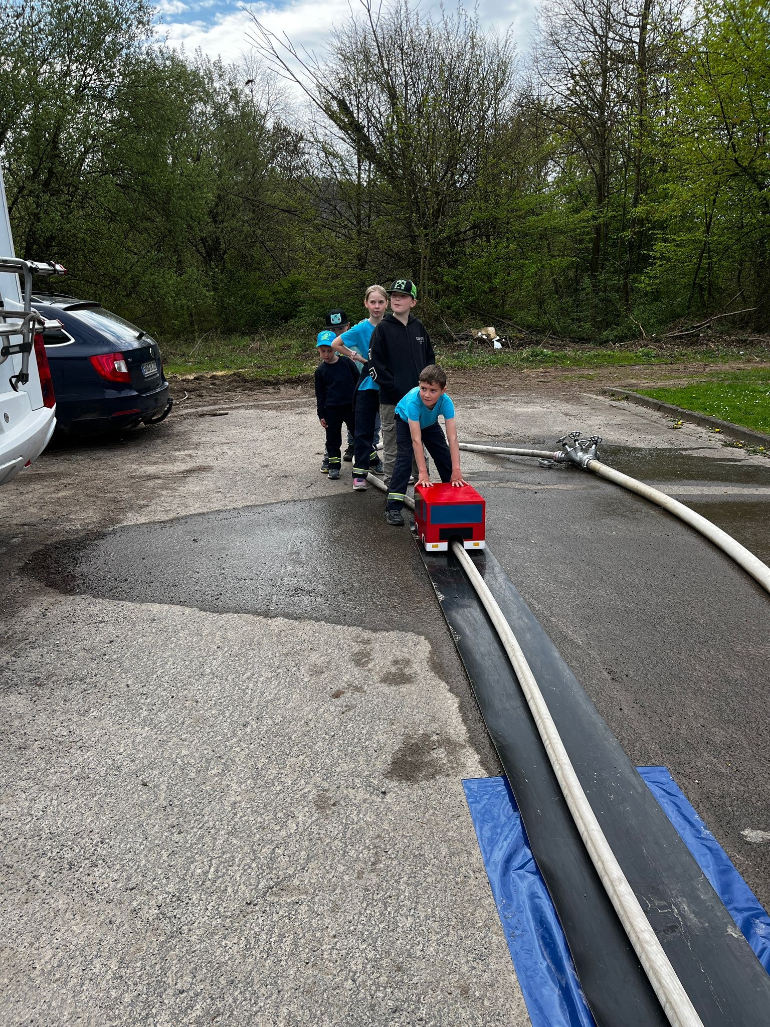 Ab 11:00 Uhr begann die intensive Mission auf einer rund vier Kilometer langen Route. Die zukünftigen Floriansjünger mussten sich an fünf anspruchsvollen Stationen beweisen, die alles forderten: von Präzision beim Schieben eines Autos entlang eines gefülltes Feuerwehrschlauches bis hin zur Feinmotorik beim Auffädeln versteckter Muttern auf eine Schnur.
