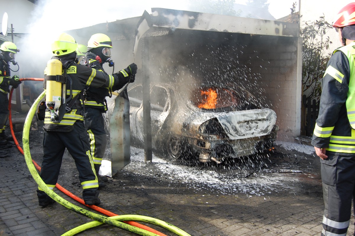 Pkw-Brand 05.10.15 02Im Wohngebäude und dem anschließenden Wintergarten sind Fensterscheiben aufgrund der Wärmeentwicklung geplatzt. Personen sind nicht zu Schaden gekommen. Das Fahrzeug ist total ausgebrannt. Erste nicht abschließende Vermutungen der Polizei gingen in Richtung „technischer Defekt“. Die Feuerwehrleute waren sich sicher, dass es sich bei dem Pkw einmal um einen Ford Mondeo gehandelt hat.