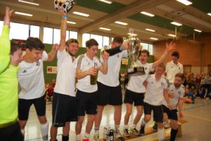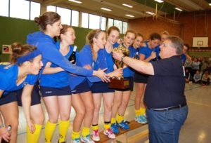 Als Ausweich-Spielort stand glücklicherweise die Sporthalle der Grundschule Am Harrl zur Verfügung. So mussten „nur“ die Bande und das Zubehör für die Tore umziehen, die Spielpläne, die Helfer und die Mannschaften informiert werden und dann konnte es fast wie gewohnt losgehen. Insgesamt zehn Damen und zehn Herren Teams starteten am Samstag um 10.00 Uhr ins Spielgeschehen. Schnell war klar, dass ein Feld aus gleichwertigen Mannschaften zusammengekommen war. Es gab viele Spiele, die hart umkämpft waren und nur knapp entschieden wurden. Auch die beiden Finalspiele wurden erst durch ein Siebenmeterschießen entschieden.