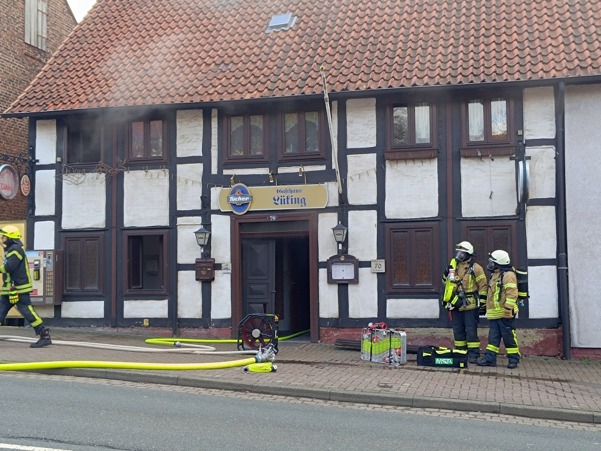 Beim Eintreffen von Einsatzleiter Frank Belte und weiteren Einsatzkräften stieg bereits deutlich sichtbarer Rauch aus dem Gebäude auf. Die ersten Einsatzkräfte gingen unter Atemschutz in das Gebäude vor und stellten eine starke Verrauchung fest. Der Brandherd konnte zügig lokalisiert und mit einem Hohlstrahlrohr gelöscht werden. Zur Kontrolle möglicher weiterer Glutnester kam eine Wärmebildkamera zum Einsatz.