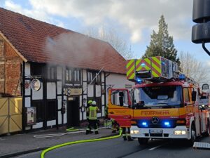 (16.3.26) Am Sonntagnachmittag wurden gegen 16:10 Uhr die Ortsfeuerwehren Obernkirchen und Gelldorf, der Einsatzleitwagen der Stadtfeuerwehr sowie die Feuerwehr Bückeburg-Stadt mit dem Drehleiterzug zu einem Gebäudebrand in die Rintelner Straße alarmiert. Ein vorbei kommender Feuerwehrmann aus Steinbergen bemerkte eine Rauchentwicklung aus einem Gebäude und setzte daraufhin den Notruf ab.