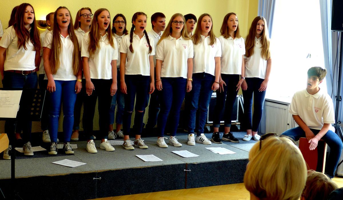 Foto 2: Konzertchor der Schaumburger Märchensänger unter der Leitung von Sascha Davidovic, r. am Cajon: Nicolai Schein