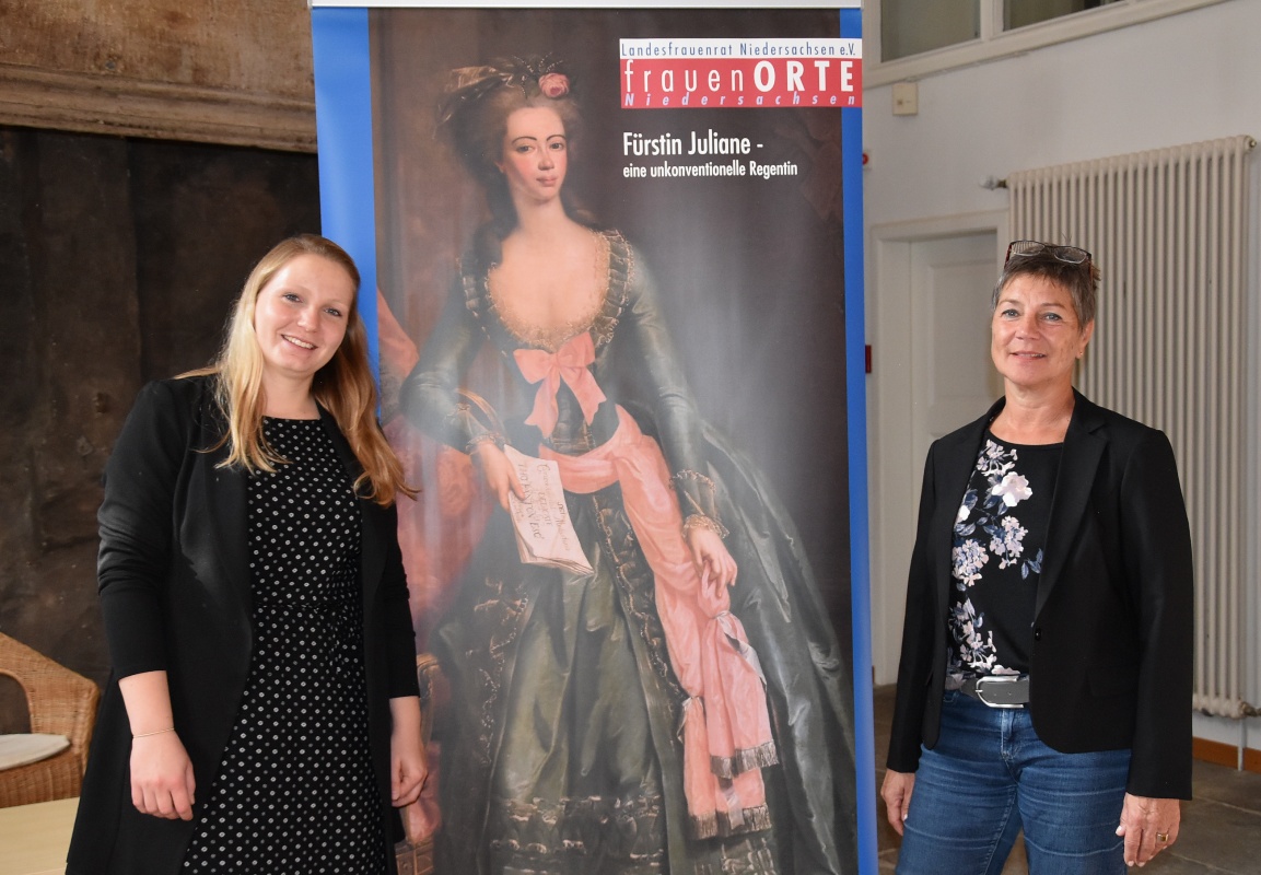 Bückeburg ist der 21. frauenORT in Niedersachsen und steht für die unkonventionelle Regentin Fürstin Juliane zu Schaumburg-Lippe. „Es ist keine reine Juliane-Ausstellung, aber in der Ausstellung wird ein besonderes Augenmerk auf diese Fürstin gelegt“, so Twachtmann-Schlichter.